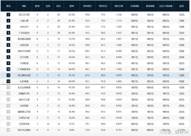 CBA積分榜:北京升第三,廣東滑到第四,山西升第六,遼寧升第八