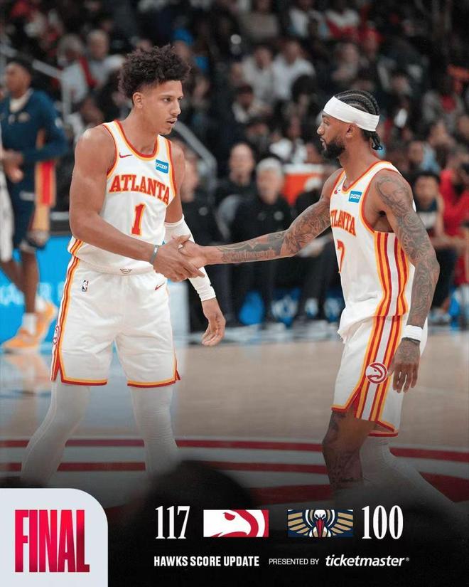 北京時(shí)間1月8日,NBA常規(guī)賽老鷹主場(chǎng)對(duì)陣鵜鶘,其中鵜鶘是背靠背第二場(chǎng),特雷-楊因傷缺席,但在比賽過程中被交易去奇才。老鷹憑借7人得分上雙的團(tuán)隊(duì)攻勢(shì),最多時(shí)刻領(lǐng)先25分優(yōu)勢(shì),最終老鷹117-100雙殺鵜鶘結(jié)束2連敗,鵜鶘遭遇9連敗穩(wěn)居西部倒數(shù)第一。